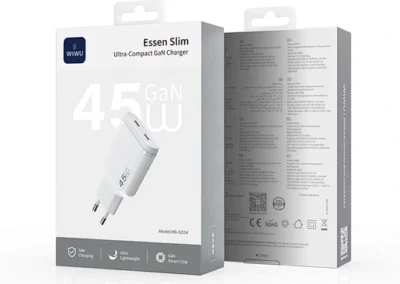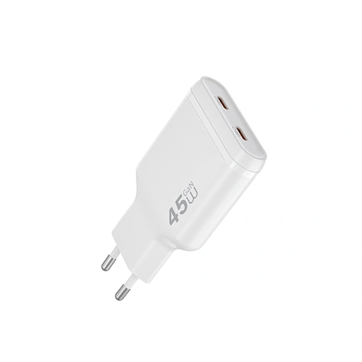 Power up your essentials with the WiWU 45W GaN Charger. Engineered for efficiency and portability, this compact adapter is the perfect travel companion for your modern devices. It features two USB-C ports, allowing you to charge two devices simultaneously without waiting. The intelligent internal chip ensures a safe, cool, and stable charge, while multiple layers of protection guard your phone against electrical hazards. Housed in a durable, flame-retardant PC shell and designed with a universal wide-voltage input, this exquisite charger is ready to go wherever you do.