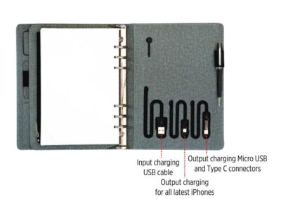 AIGIO – Giftology A5 Notebook Organiser With 10000mAh Powerbank Grey