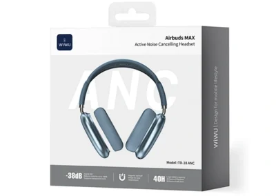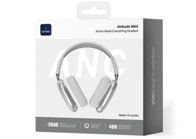 Redefining the over-ear headphone experience. The WiWU Airbuds MAX are meticulously engineered from top to bottom for an exceptional acoustic performance and all-day comfort. The advanced hybrid Active Noise Cancellation system provides an industry-leading -38dB of noise reduction, creating a pure, immersive sanctuary for your music. The custom-built 40mm composite drivers deliver rich, deep bass, crisp mids, and crystal-clear highs, ensuring every note is heard with stunning clarity. The iconic design features anodized aluminum earcups and a breathable knit mesh canopy for a lightweight, pressure-free fit. The magnetically detachable memory foam ear cushions provide a perfect seal and can be easily removed for cleaning. With a remarkable 40 hours of playtime, the Airbuds MAX are your ultimate companion for travel, work, and pure audio enjoyment.