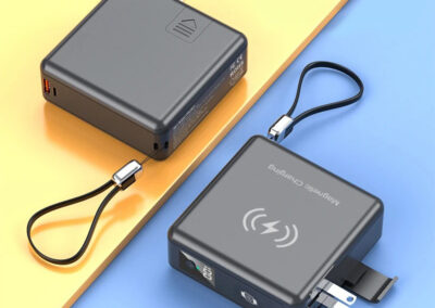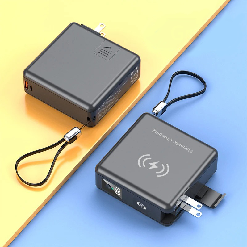 This innovative product in a premium black finish combines a regular wall charger/travel adapter with a wireless charger and a 10,000 mAh powerbank . The wall charger can be used in various countries as US, EU & UK compatible power plugs are provided in the box that can easily be detached and reattached to the wall charger. It has a QC 3.0 18W USB port which enables fast charging of any device and a Type-C PD Output port which allows you to charge smartphones or even larger devices like tablets and laptops. The convenient 15W wireless charger placed on the side can be simply used by turning on the powerbank and placing it sideways on any surface to fast charge your smartphone. There are 2 inbuilt cables as well with one Type C cable and one 2 in-1 Micro & Lightning cable, which removes the hassle of having to remember to carry additional cables. There is also an LED display that shows the battery status.