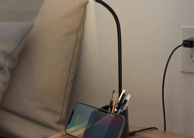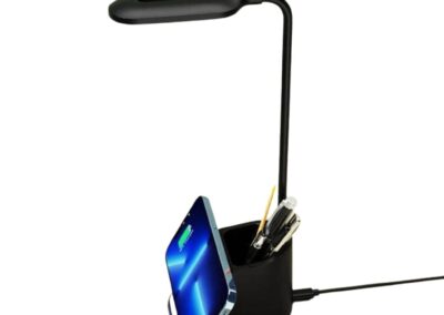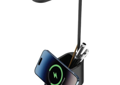 Almere is a 3-in-1 Desk Lamp with 15W Wireless Charger and Pen Holder – a great office accessory. The lamp is flexible with 360 degrees rotation, and comes with warm, white and natural light options. Packed in a gift box