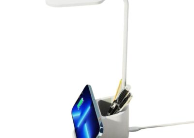 Almere is a 3-in-1 Desk Lamp with 15W Wireless Charger and Pen Holder – a great office accessory. The lamp is flexible with 360 degrees rotation, and comes with warm, white and natural light options. Packed in a gift box