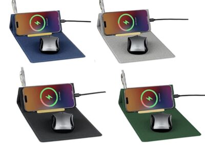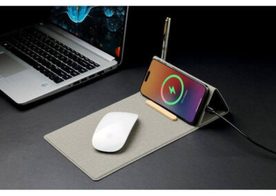 Memorii® Folding Wireless Mousepad & Desk Organizer is an elegant and compact desk accessory made from RCS-certified recycled PU. It includes a 15W wireless charger and phone stand with a bamboo stopper, mousepad and pen stand. Folds flat and can be easily carried on the go. Blace is a CHANGE ZERO product, which means that it is developed with a net zero carbon footprint – By using RCS-certified recycled PU materials, we reduce 14% carbon emissions from material use (verified by ecoact®). Further, we offset the balance 1.08 kgCO2eq per unit by financing renewal energy projects through Climate Partner, making it a carbon-zero product. Packed in an elegant gift box.