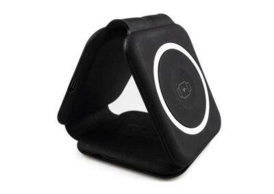 Bolero is a unique design of foldable dual wireless charger and in-built multi-cable set. The dual chargers provide 15W magnetic wireless charging for mobile phones and 3W wireless charging for compatible wireless charging Smart Watches or Bluetooth Earpods. Additionally, the multi-cable set includes USB, Micro, Type-C and Lightning connections with an ejector pin and SIM card slots for all your essential travel requirements. Portable and packed in a gift box.