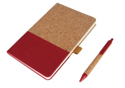 BORSA – eco-neutral A5 Cork Fabric Hard Cover Notebook and Pen Set Red