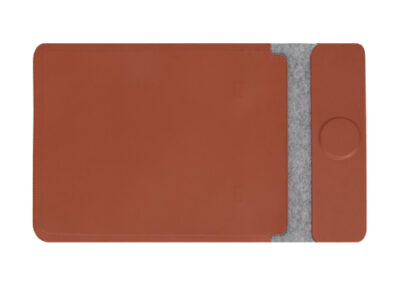 CAMDEN is a sleek and minimalist 14″ laptop sleeve with in-built 15W magnetic wireless charger. It is dual function and can also serve as a desk mat / mousepad for your office or home, which you can then pack a laptop inside and carry with you as a protective laptop sleeve. It is made from combination of felt and PU material, and can fit laptops up to 14″ in size. Packed in a gift box.