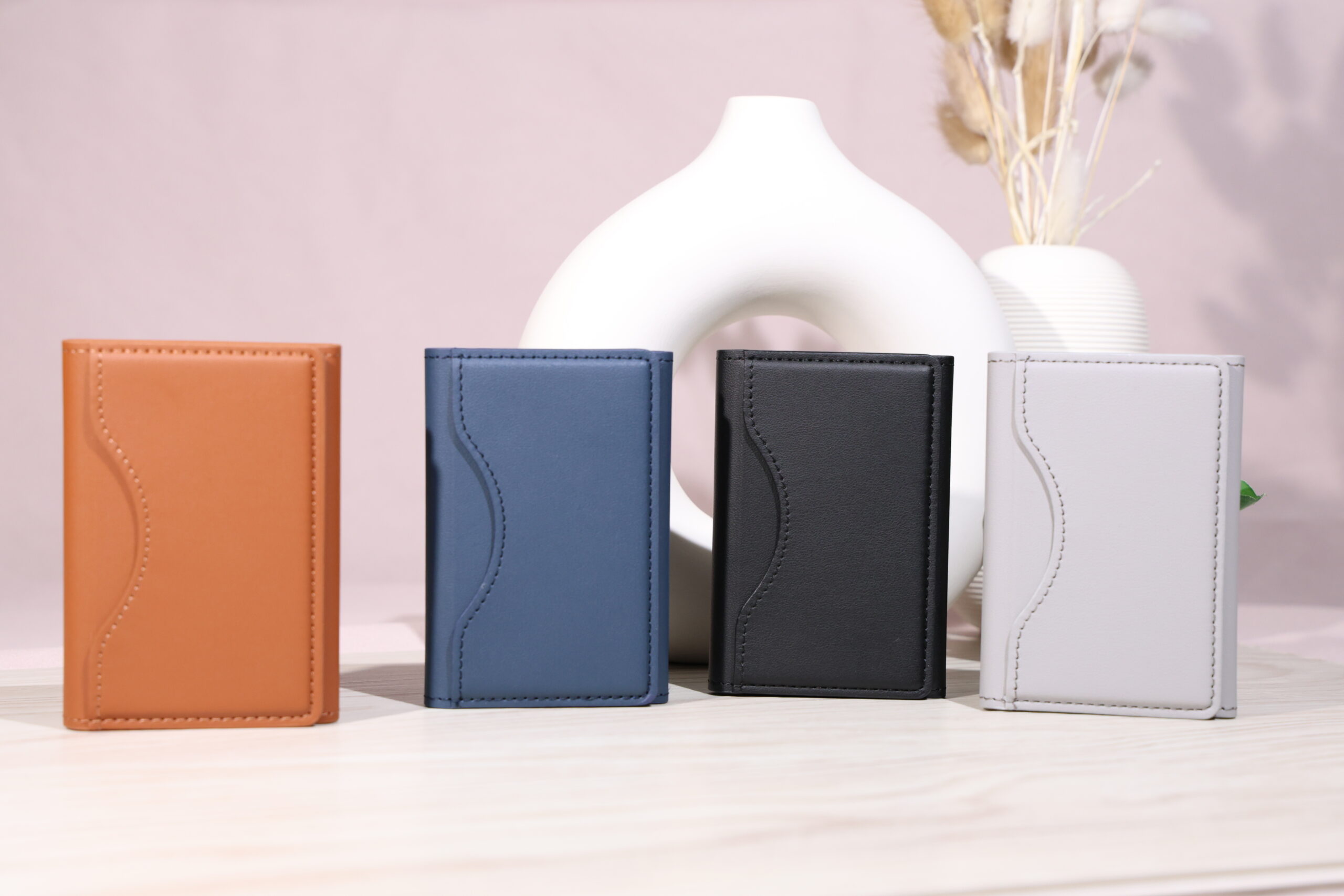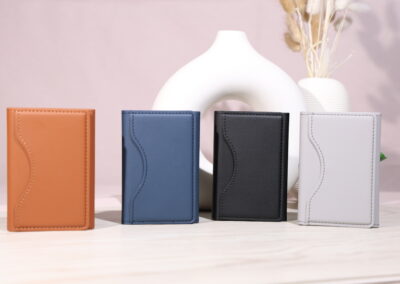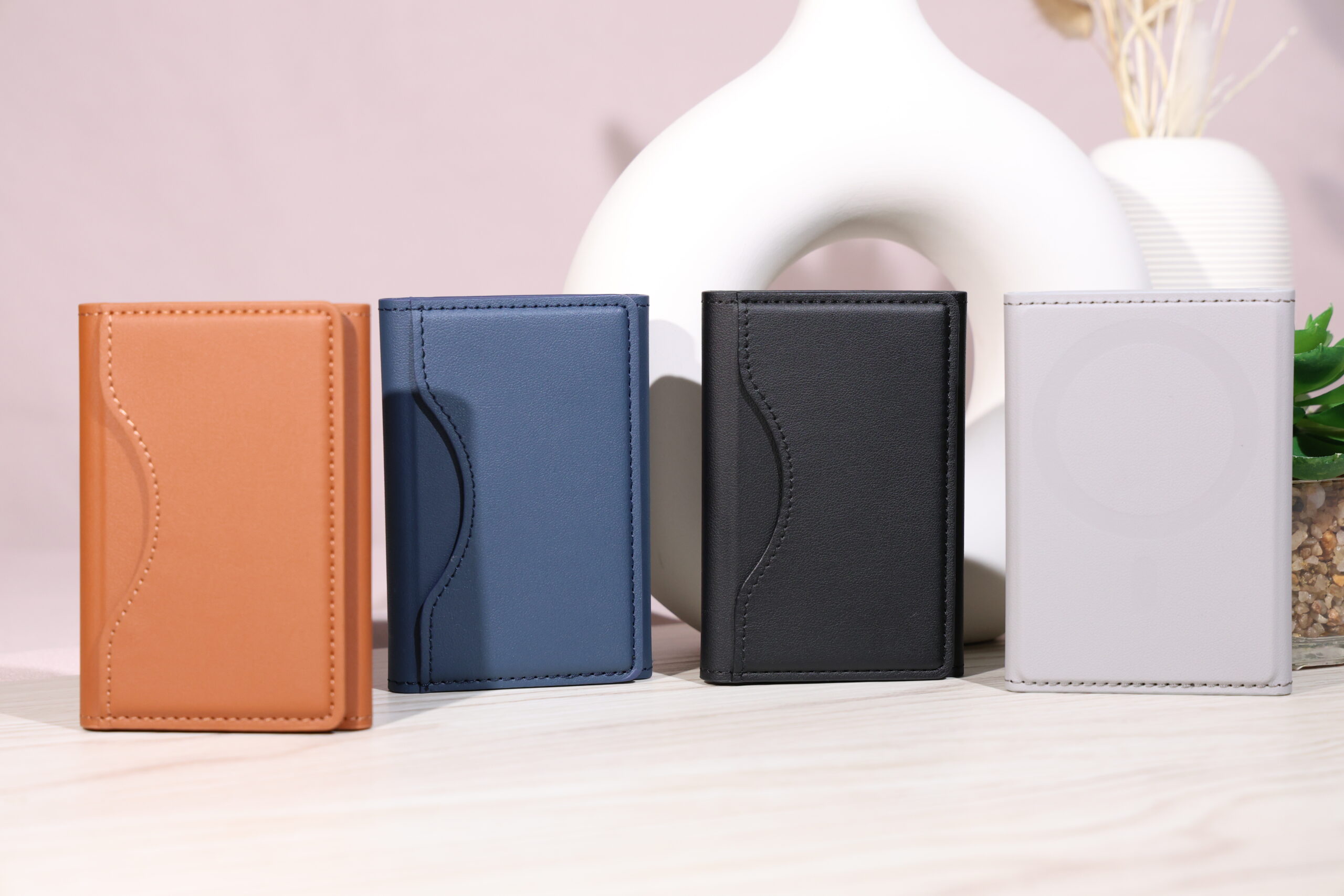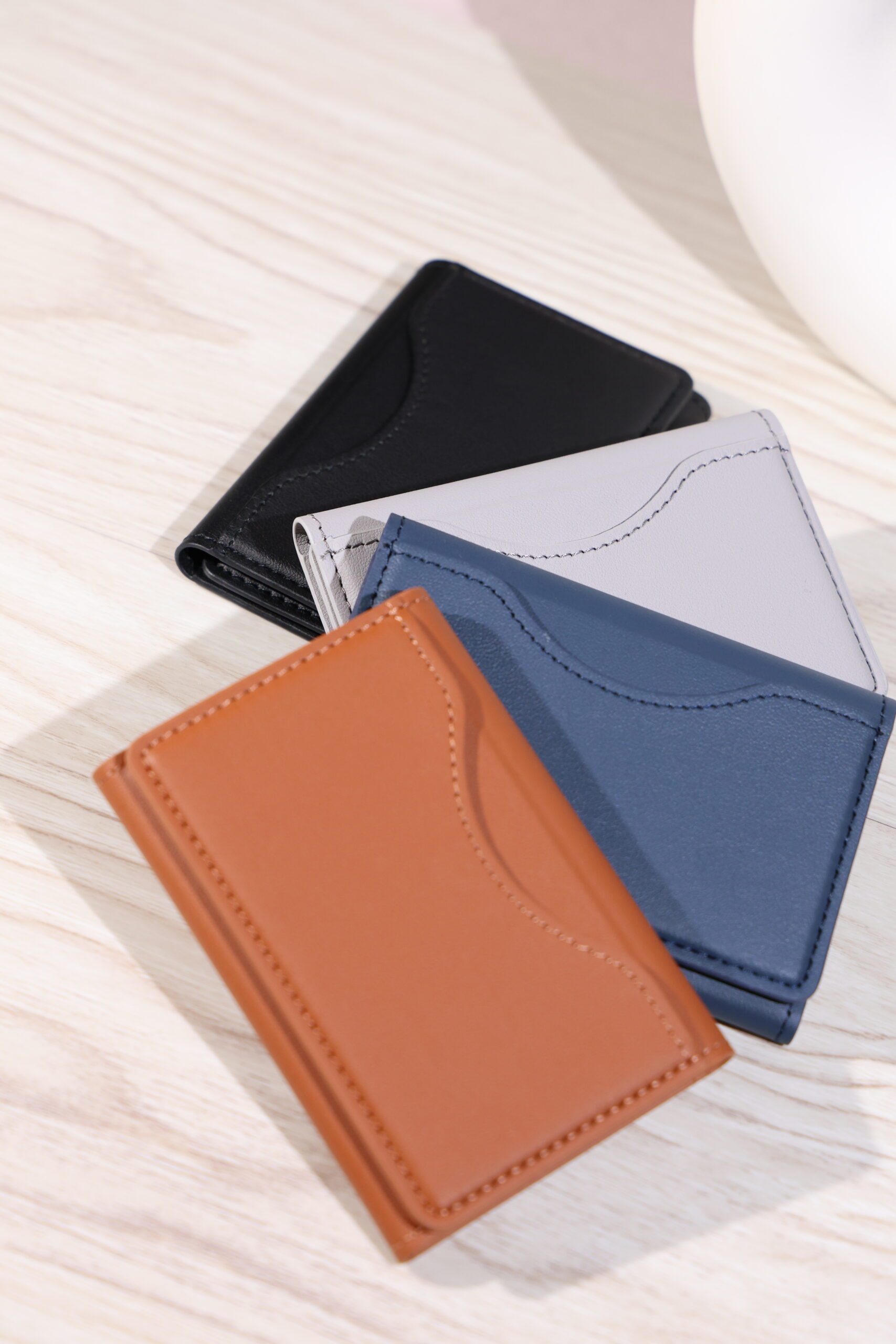 A slim and stylish card holder made from PU leather. Attaches securely to your phone with MagSafe for easy access to your essentials. Product Size: 7.2×10.2×1.5cm. Packaging: Paper Box