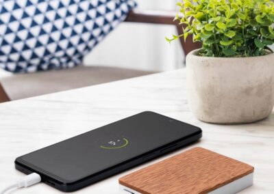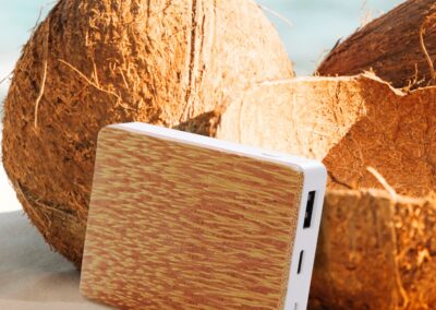 A sustainable 5,000 mAh wireless powerbank made of a combination of coconut wood and recycled ABS. It includes various different kinds of ports so you can use any of the cables you have on hand depending on the device. It is also super compact making it extremely portable for travel