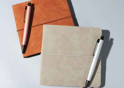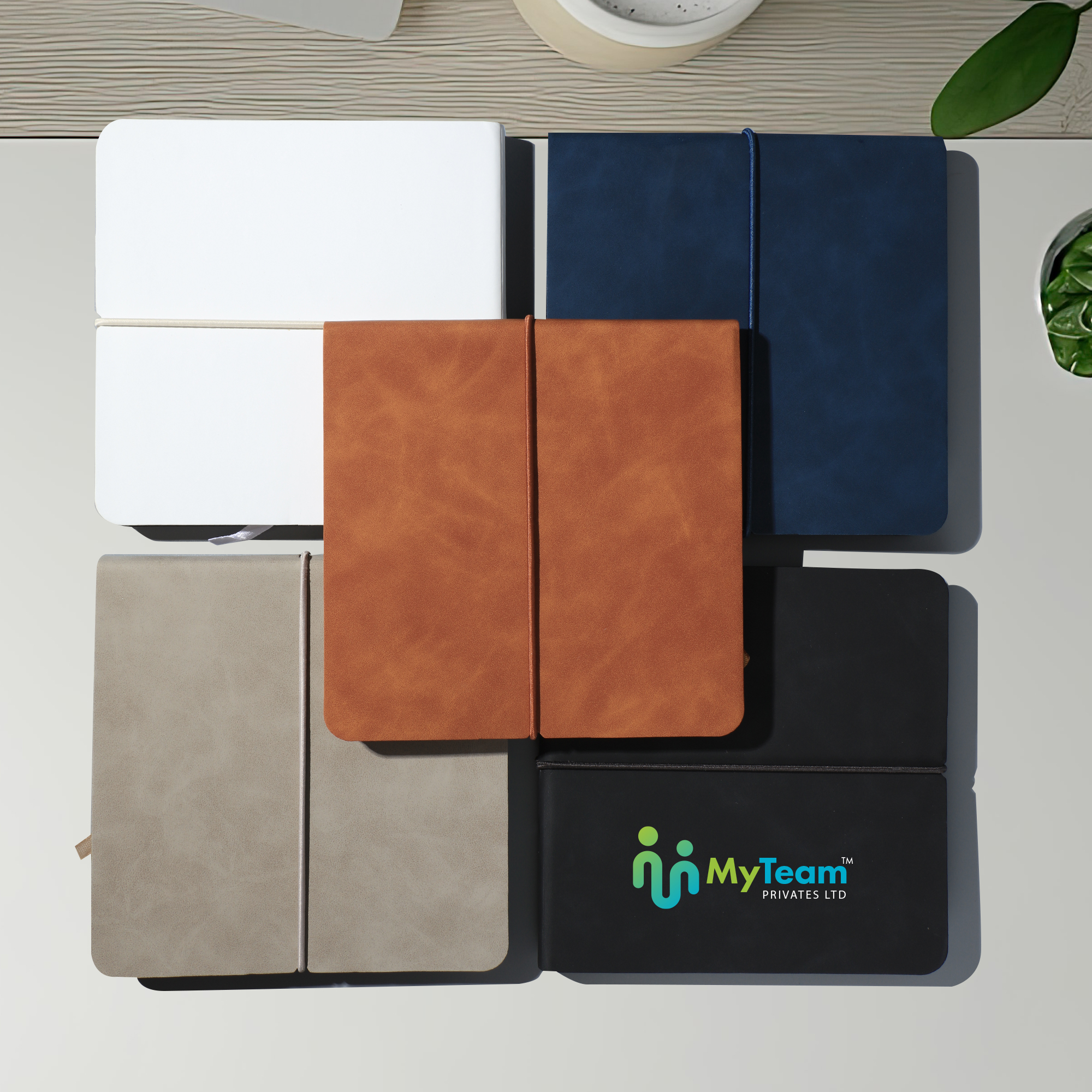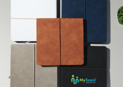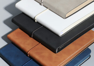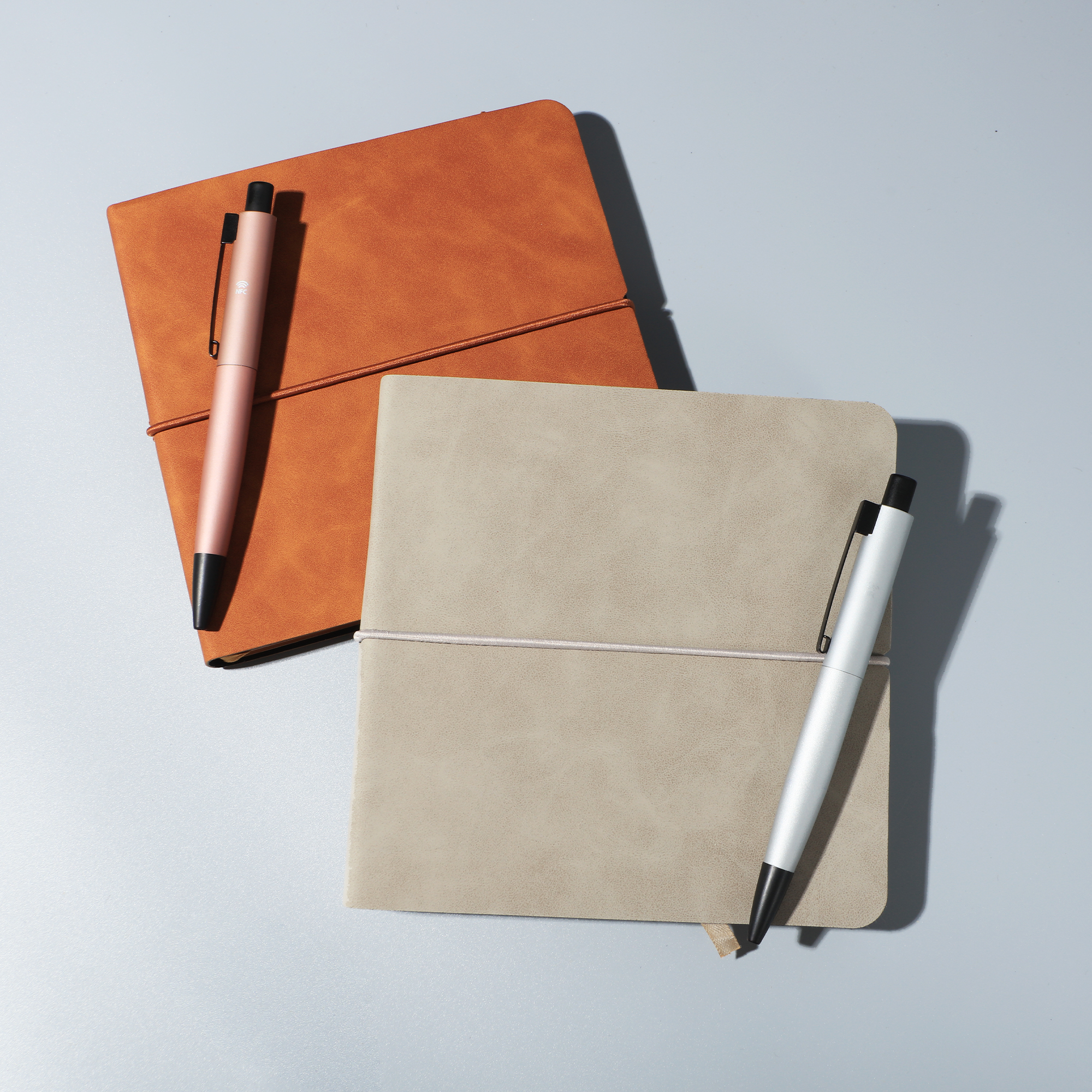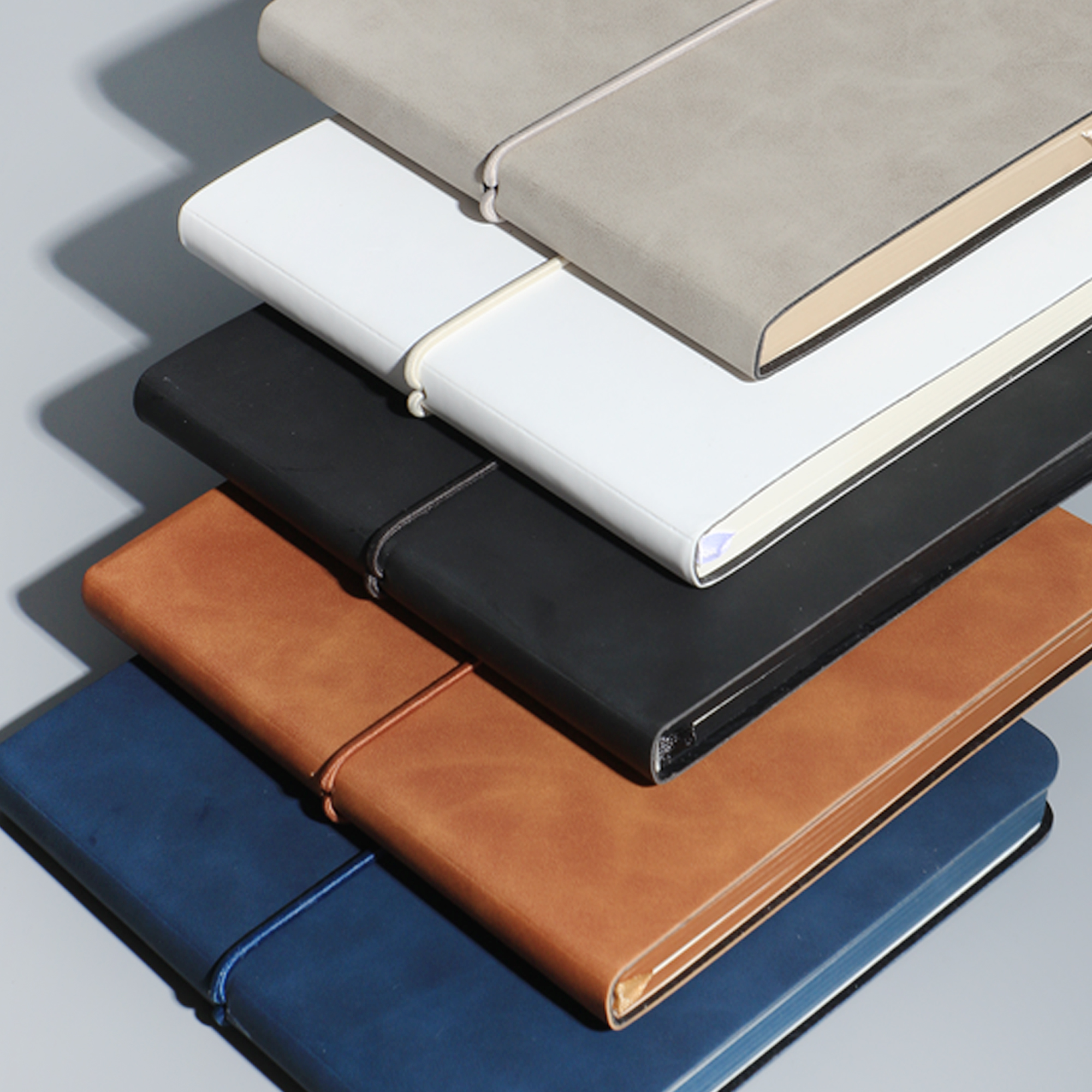120sheets A6 size notebook in black card with PU cover. Has paper pocket inside for inserting documents. Has sheet side color and elastic closure matching item color. Product Size: 15.4×15.4×1.5cm. Packaging: Polybag