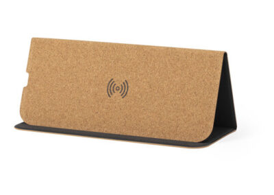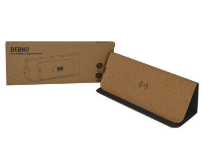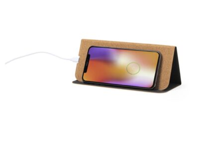 Natural Cork Mousepad with built in 15W fast wireless charger, non-slip base and integrated smartphone holder. Compatible with all wireless charging devices. With Type C cable included.