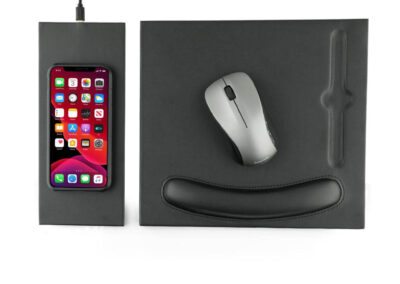 Doberan is a 2-in-1 mousepad with detachable and attachable 10W wireless charger pad. Using 2-sided magnets, the wireless charger pad can be detached and attached to the left or right side of the mousepad, providing a nice adaptability to left or right handed users. The mousepad has an in-built ergonomic wrist rest with cushioning. Packed in a gift box