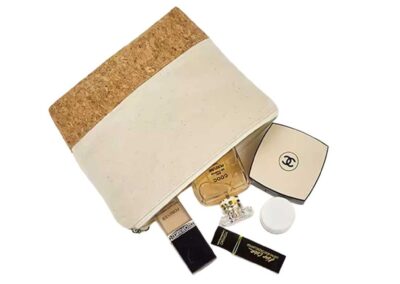 Zipper Pouch made with 145GSM recycled cotton and natural cork finish. Stylish look.