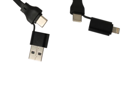 A 4 in 1 fast charging wire with body made from bamboo material.