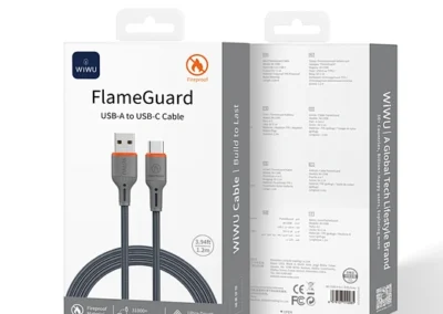 Charge with complete confidence. The WiWU FlameGuard Cable is meticulously engineered to solve the hidden dangers of traditional charging cables, such as ignition and overheating. Its core and braiding are crafted from advanced flame-retardant materials; even when exposed to high temperatures, it will not ignite and will self-extinguish upon leaving the flame source. Beyond its superior safety, the FlameGuard is built to last. The high-density nylon braid is incredibly durable and resistant to fraying, while remaining soft and flexible for easy handling and storage. It’s the ultimate combination of safety, durability, and everyday convenience.