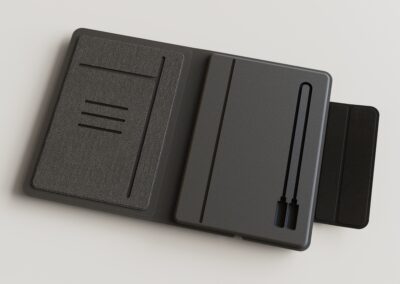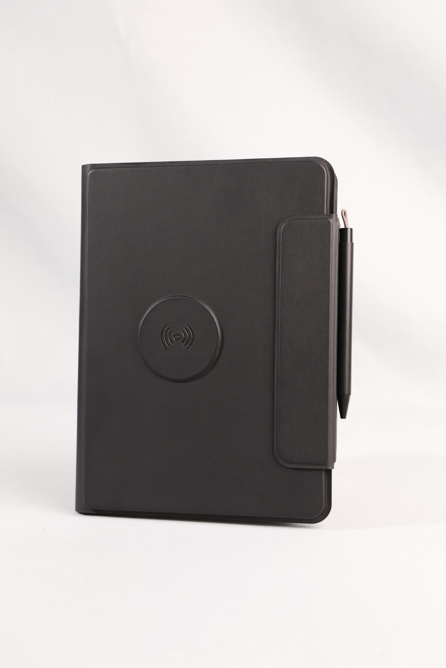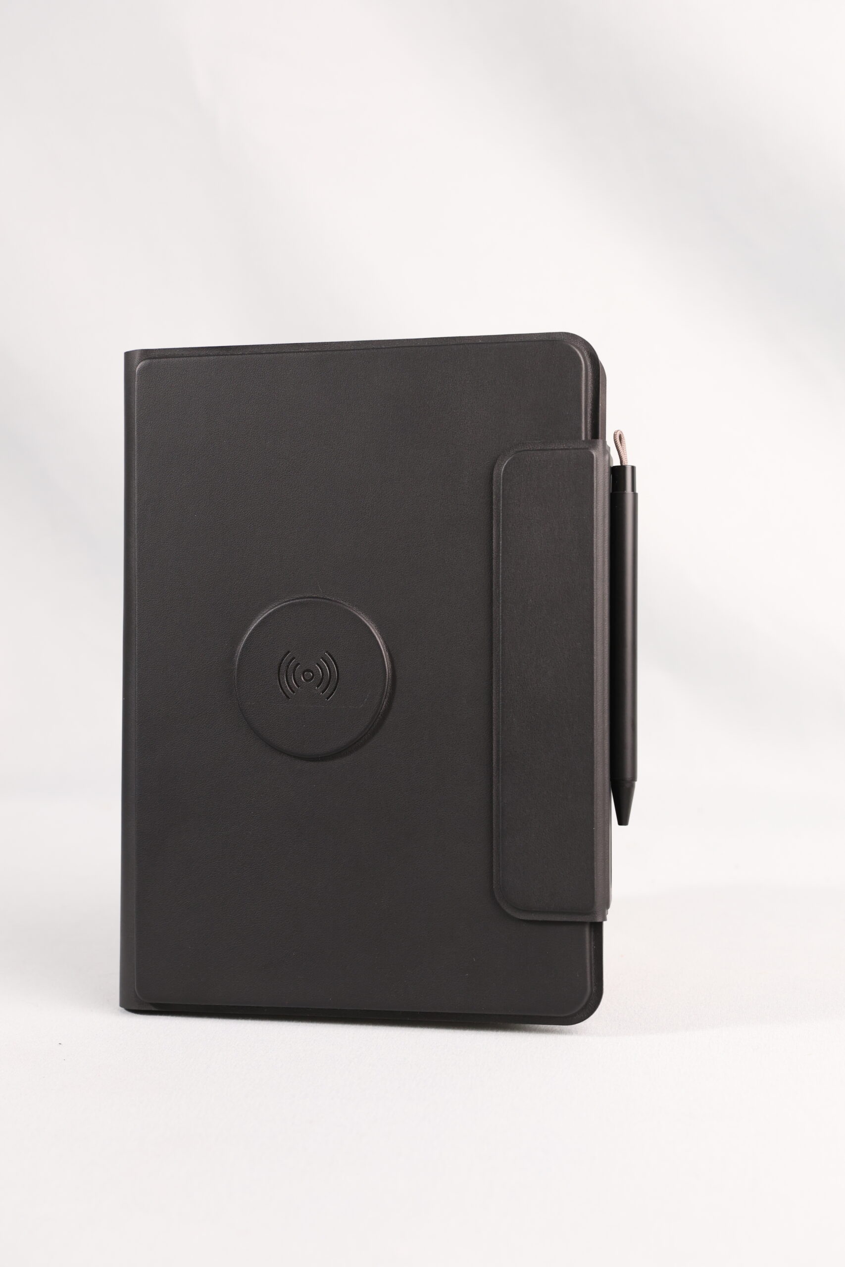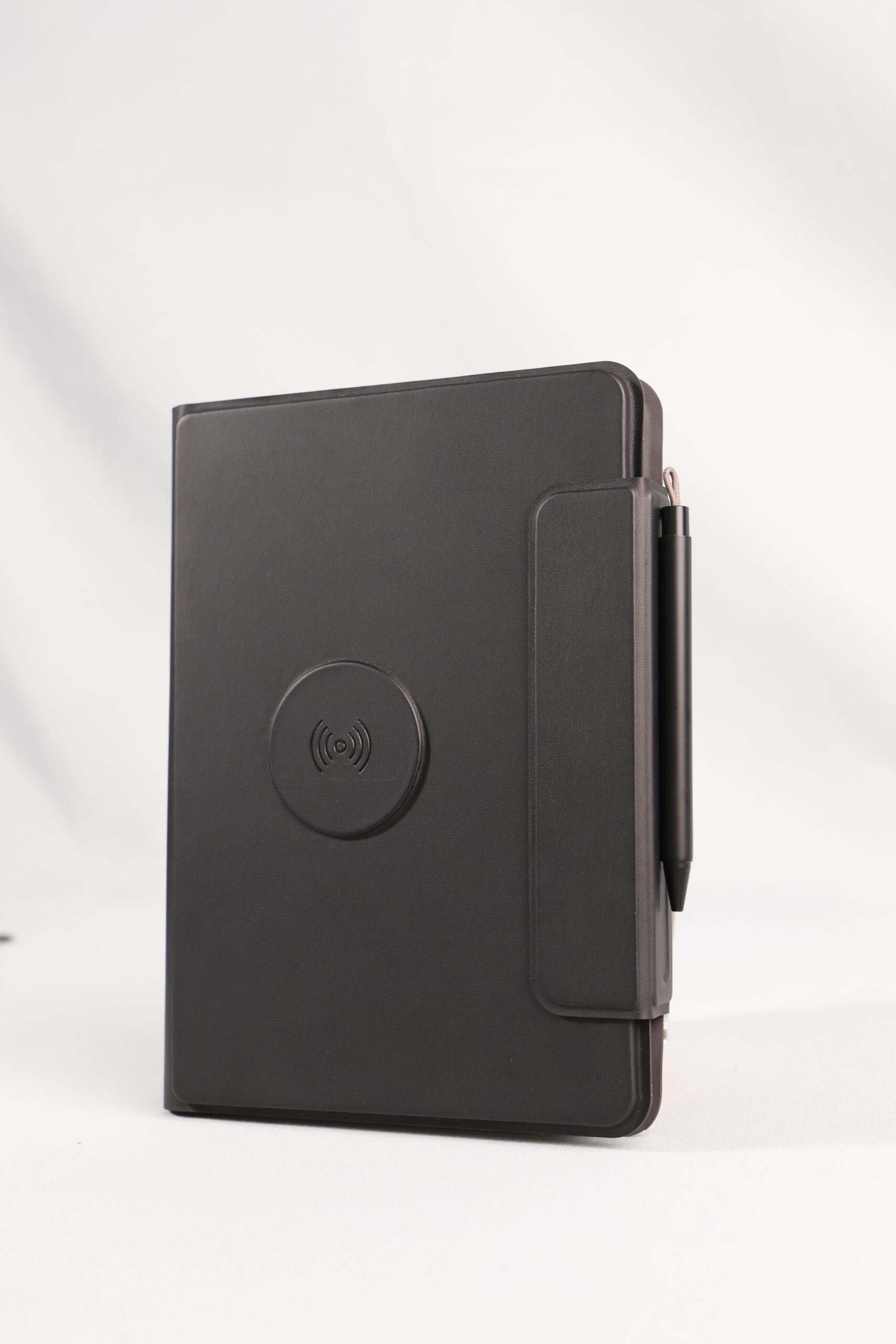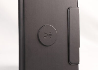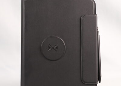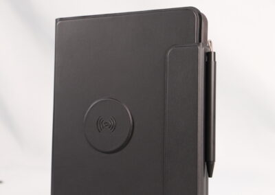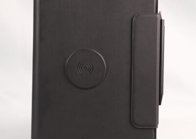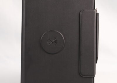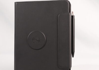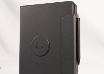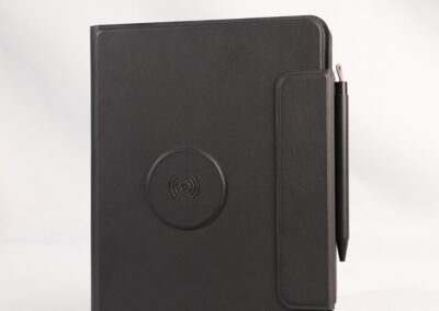 A perfect blend of productivity and power. This elegant PU notebook features 64 sheets of writing paper alongside a built-in 5000mAh wireless charging power bank, keeping your notes and devices powered throughout the day. Ideal for meetings, travel, and work on the go. Product Size: 22.5x16x2.8 cm. Packaging: Black Box