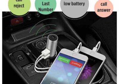 Fycar is a unique design car charger with dual USB output and with integrated bluetooth headset that allows a safe hands-free experience whilst driving. The integrated earbud is charged when driving and is ultra-portable due to its small design (20 x 33 mm). The device uses the advanced bluetooth 4.0 connection which ensures a smooth connection and perfect sound quality. The magnetic top of the charger allows you to easily place the earbud back in the dock to charge it. The charger is suitable for all mobile phones. The earbud comes with additional ear tips in different sizes to fit all. Output 5V/1A ; 5V/2.1A