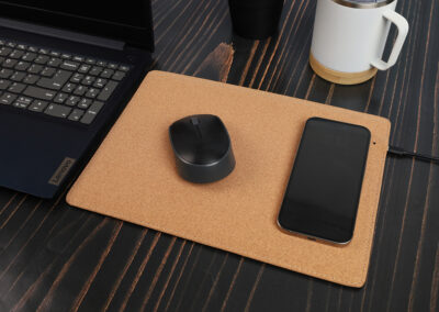 Sturdy and sleek mousepad made from eco-friendly cork material. It’s enabled with wireless charging properties to allow cable free charging of all compatible devices.