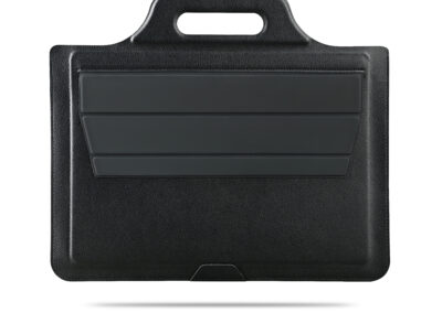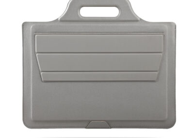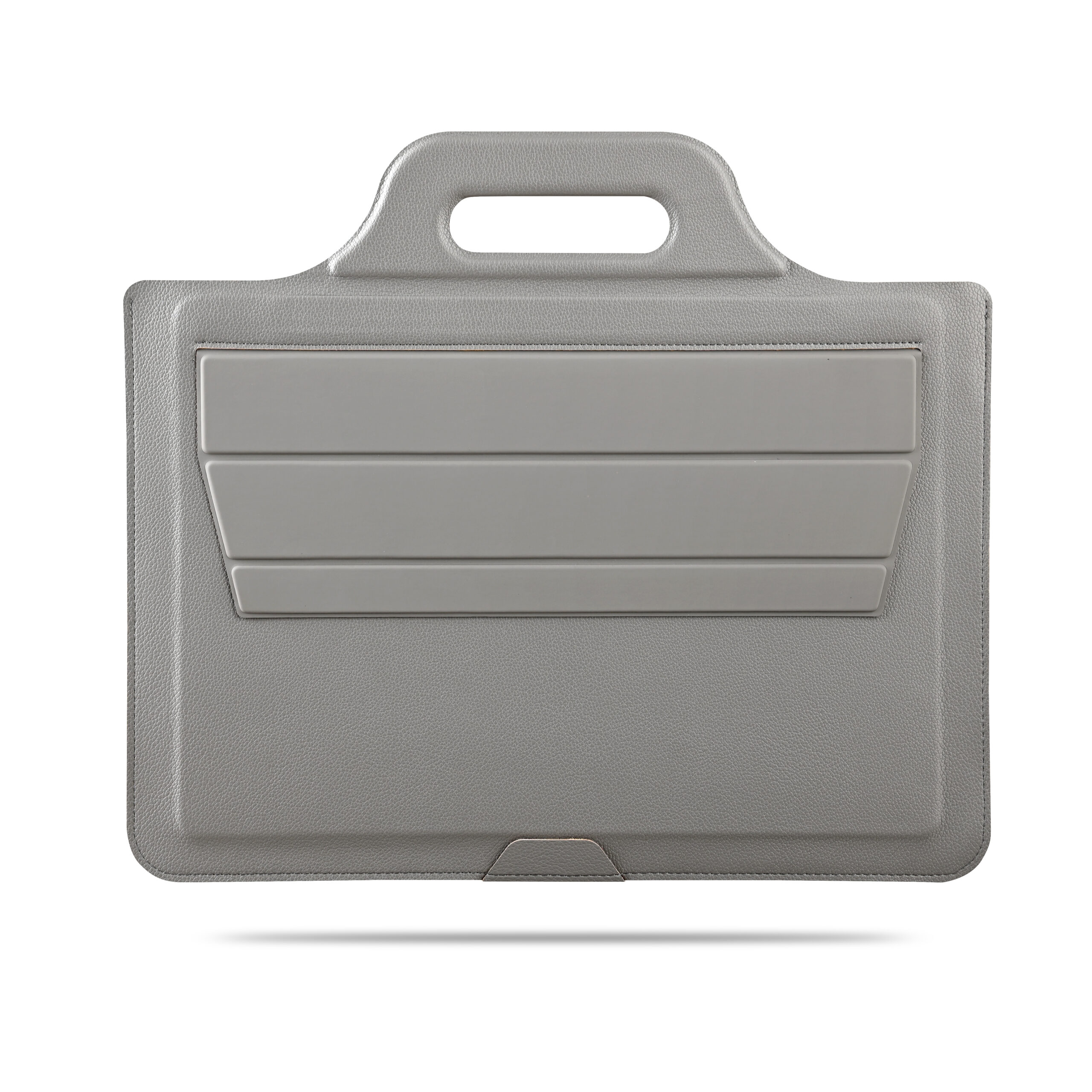 Handy Workstation laptop pouch stand made in recycled PU material. Can fit up to 14″ laptop. Product Size: 38.1×33.2. Packaging: Kraft Paper Box