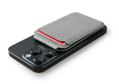 Magnetic card holder wallet that can be used as a mobile stand in recycled PU Material. Strong magnet that can stick on mobile firmly. Product Size: 9.9×6.4×0.8cm. Packaging: Kraft Paper Box