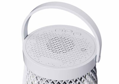 Merano is a designer Bluetooth Lamp Speaker with 180 degree sound, 4W speaker output and a 1200mAh battery capacity. The iron mesh design complements well with your office or home decor and becomes an attractive gift for all purposes. The lantern comes with 3 different brightness settings with warm colors and night light features. As a speaker, charging time is at 2 hours and playtime is 6-8 hours. Packed in a gift box