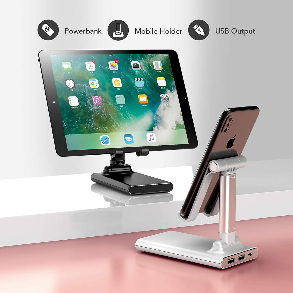 Tired of holding your phone/tablet in your hands for hours for long meetings until your hands hurt? This 6,000 mAh powerbank with a stand can solve that problem! The convenient foldable element makes it easy to fit into any small backpack or pocket. In the era of video calls and online meetings, it serves as the perfect accessory for any working person. Carry the powerbank anywhere and set it up on any flat surface, and voila! You have a working set up that can be carried anywhere for meetings, video conferences or also to catch a quick movie or TV series on the go! It can easily carry any phone or tablet up to 12.9 inches and it provides you with ample power to charge your phone or larger devices as well.