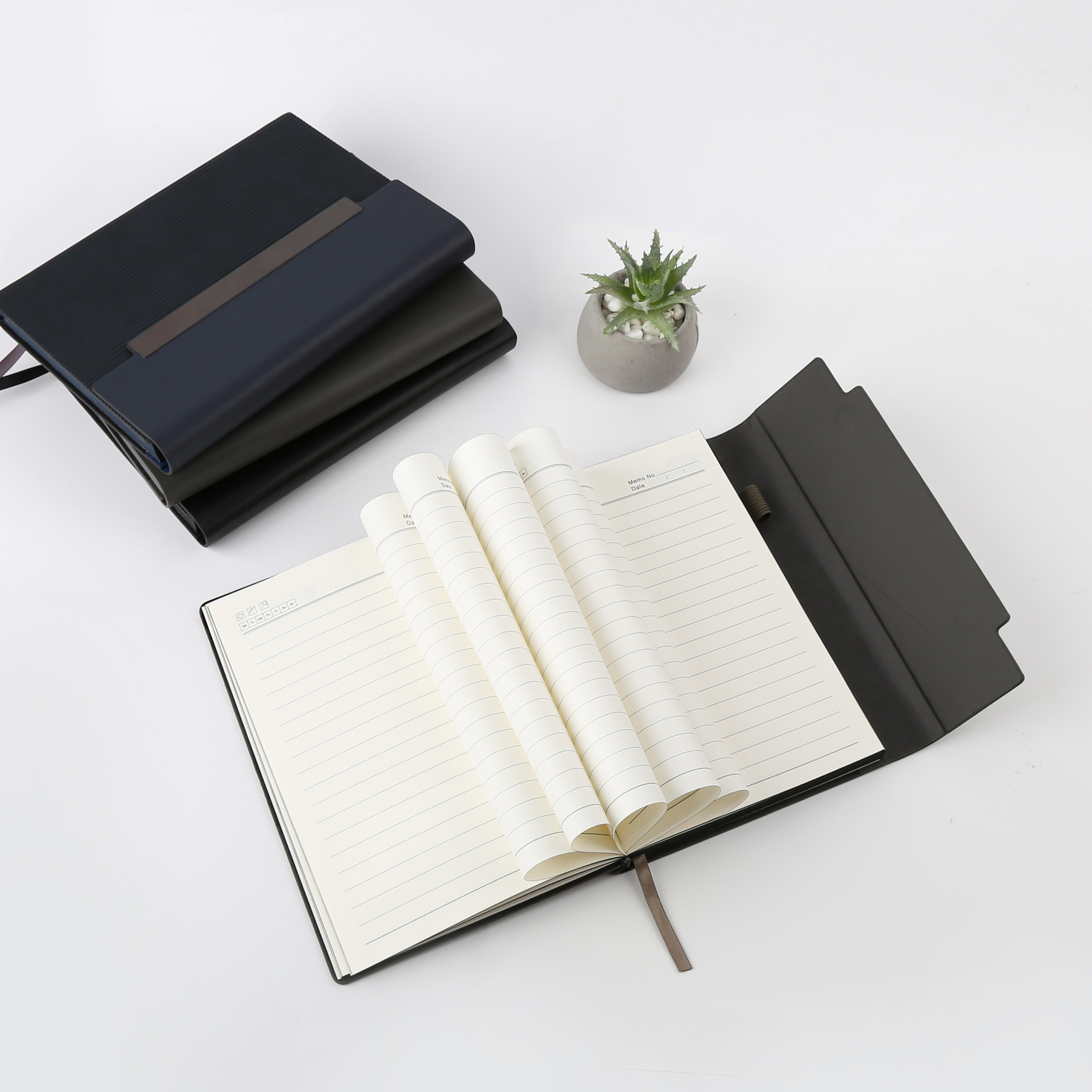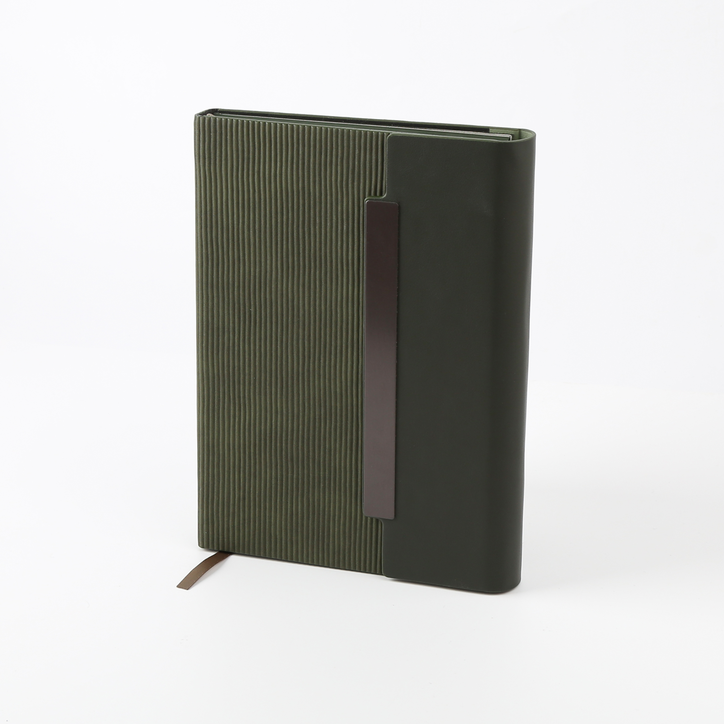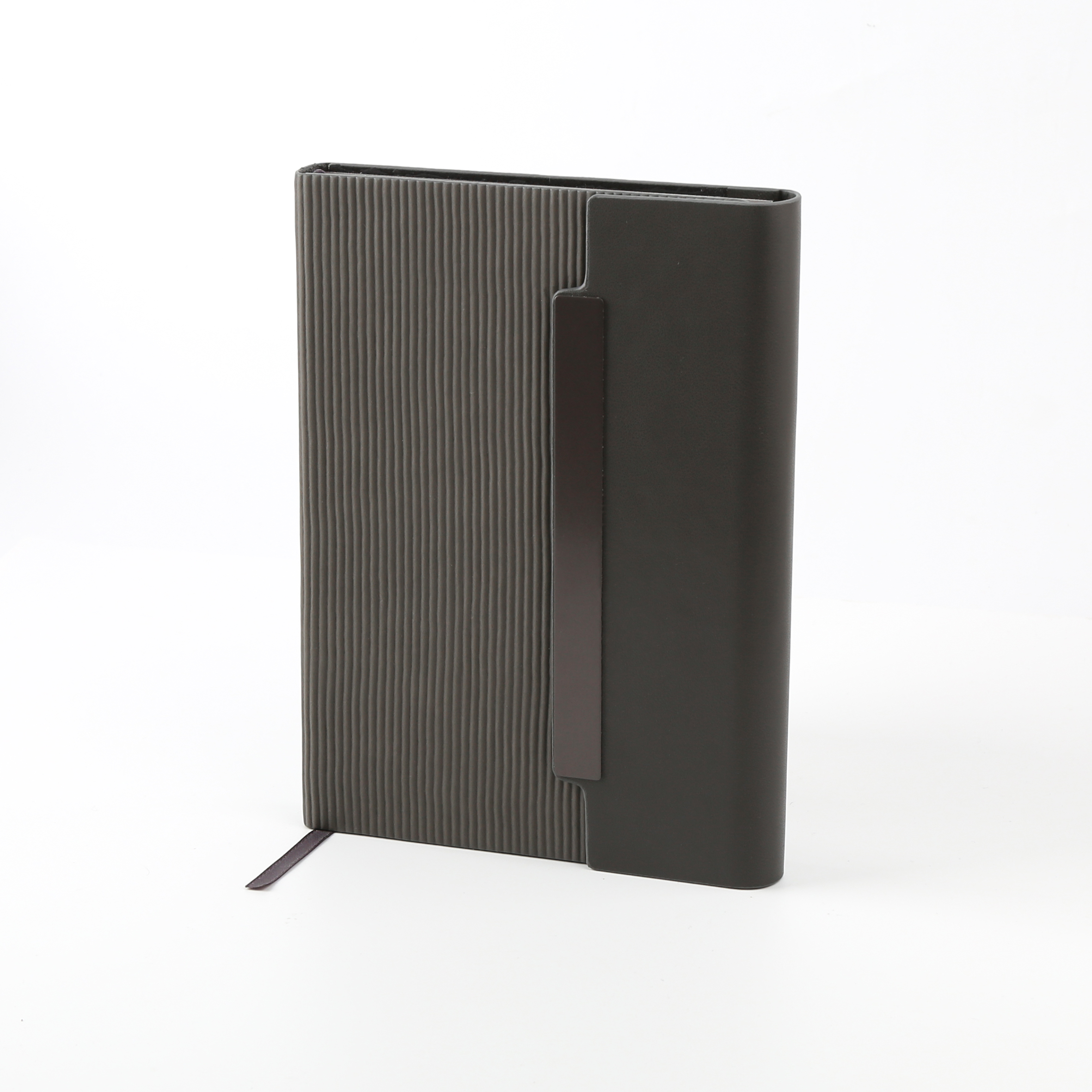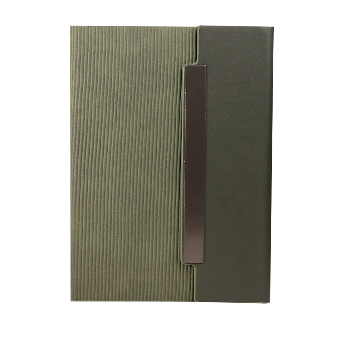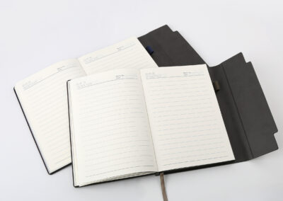 Stylish and functional notebook made with PU leather cover, 150 sheets quality paper, and steel binding. Product Size: 21×14.7cm. Packaging: Polybag