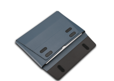 PU Laptop sleeve turned to Workstation when opened – can be used as laptop stand with mousepad and other accessory made from RCS PU Material. Product Size: 36.8×26.5x2cm. Packaging: FSC Paper Box