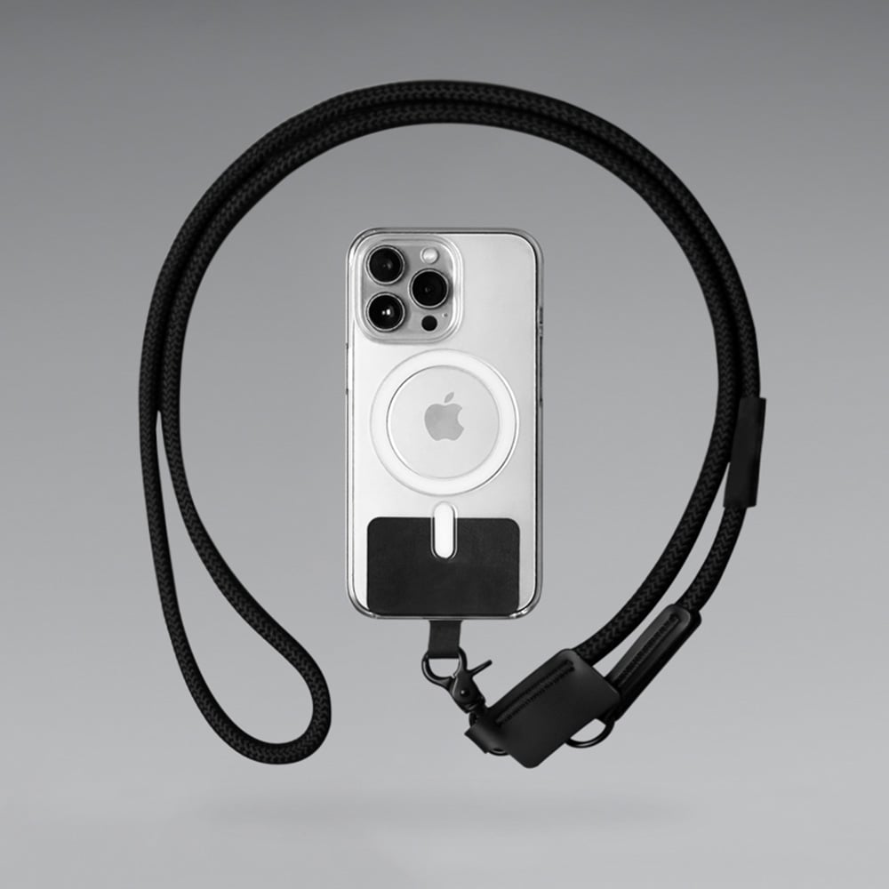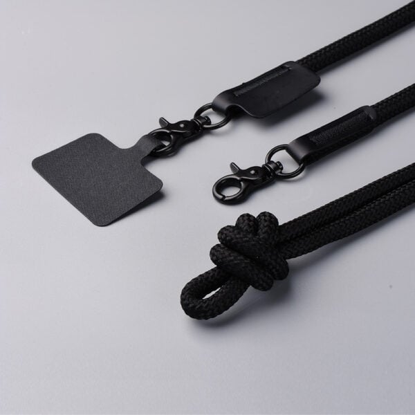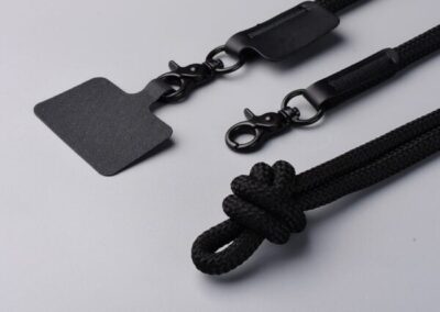 PHONE STRAP, an innovative mobile accessory crafted from recycled polyester. Designed to comfortably hang your phone around your neck or wrist, this strap includes an insert card that doubles as a phone holder, providing both functionality and style.
