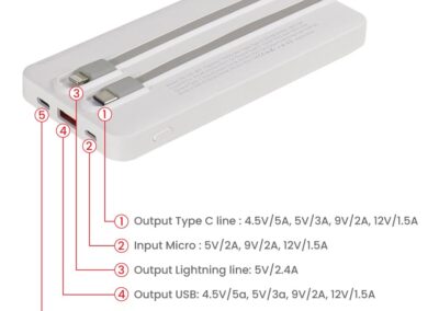 - Multiple Ports: The power banks with built-in cables also offer additional USB ports, allowing you to charge multiple devices simultaneously. This is useful if you have more than one device that needs power, such as a smartphone or tablet.