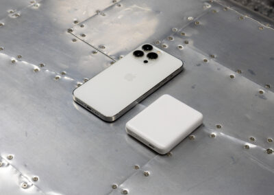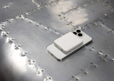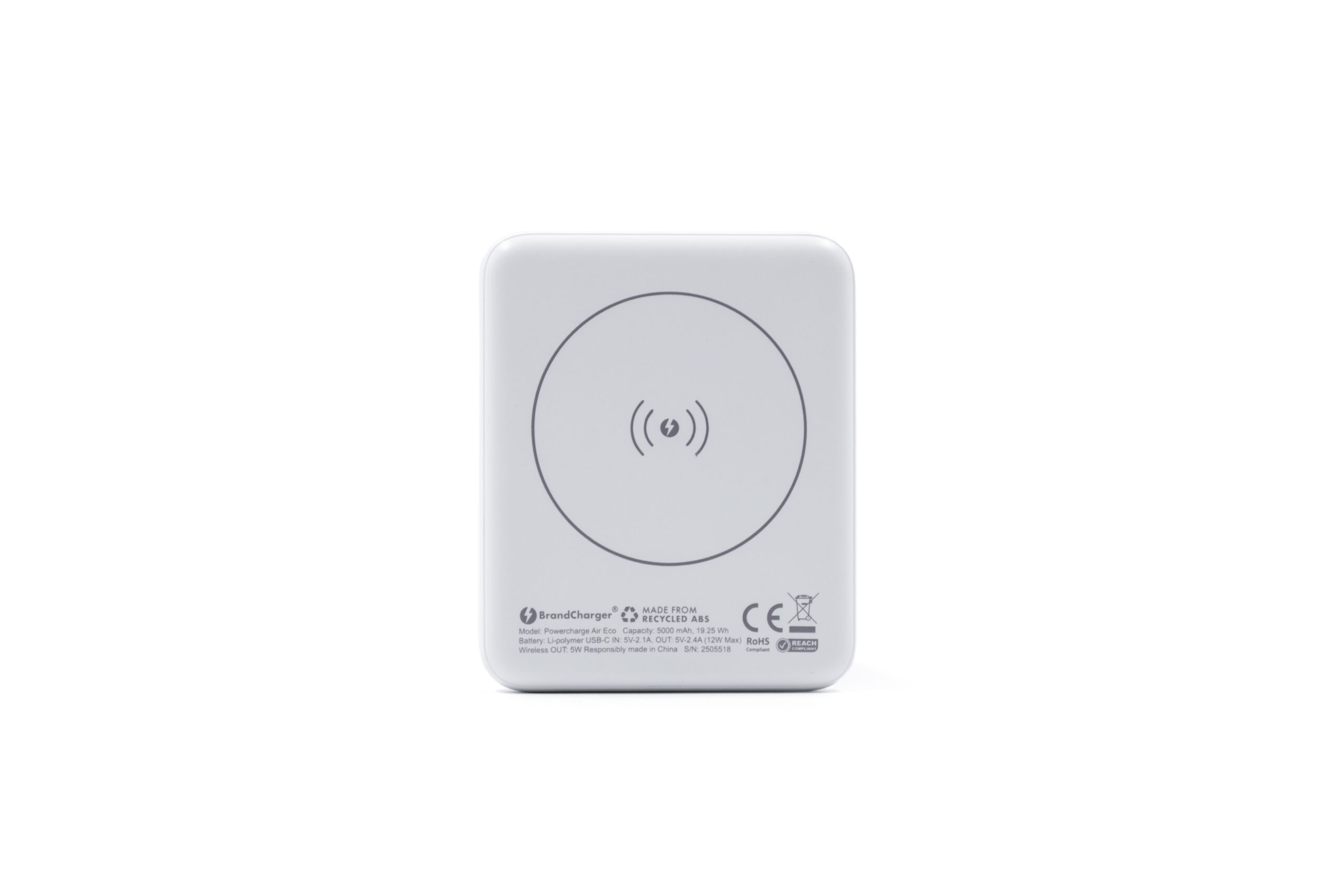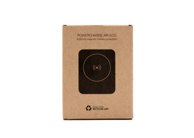 Pocket-sized sustainable 5000mAh magnetic wireless powerbank, The Powercharge Air Eco is a pocket-sized powerbank crafted from