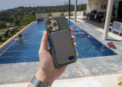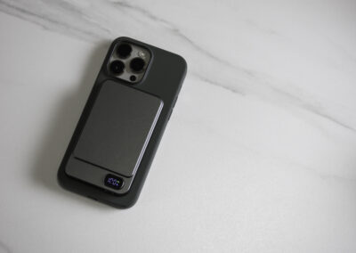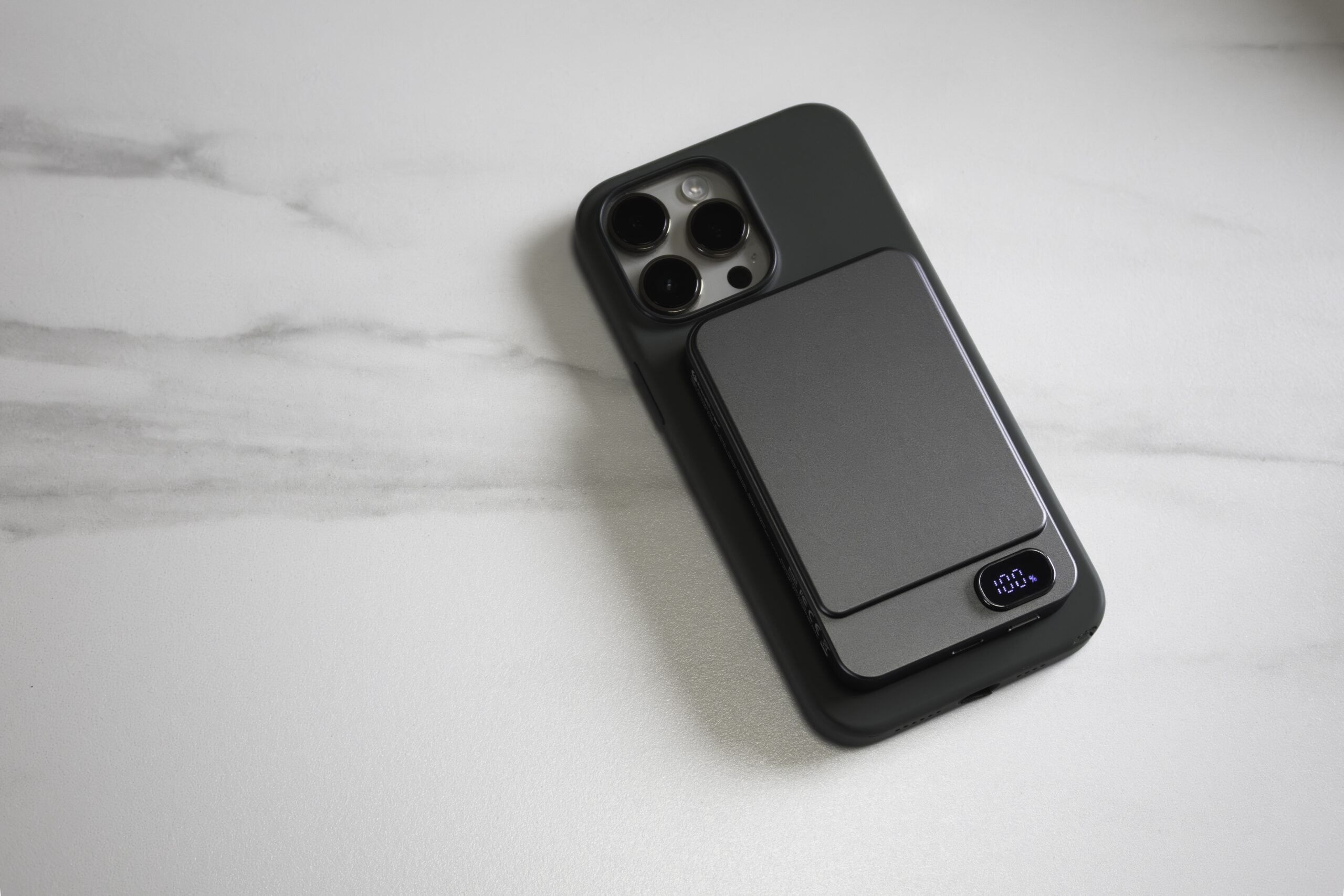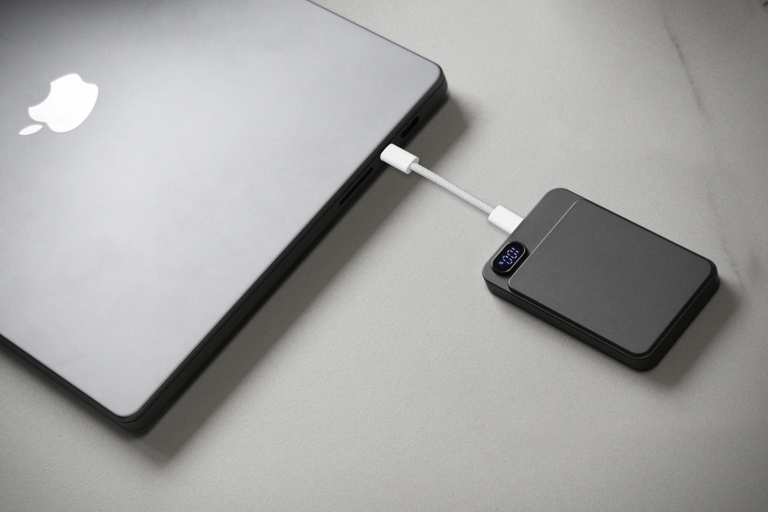 Powerwave 5000 has a sleek and thin aluminium unibody design that fits easily in any pocket. It has a capacity of 5,000 mAh supporting magnetic 15W fast wireless charging (magsafe, qi1 & qi2), so you can simply attach your compatible device on top of it and enjoy a hassle-free charge. It also has a 20W (PD 3.0) USB-C port, so you can charge your laptop or other devices with cables if needed. The clear LCD display shows the battery level and charging status.