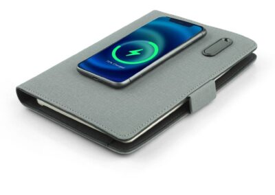 MagSafe Smart Notebook Portfolio combines design elegance and latest magnetic charging technology. With an impressive 8000 mAh powerbank, 10W MagSafe magnetic wireless charging, 32GB USB in-built flash drive, numerous ports, card pockets, phone/tablet pocket, pen loop, phone vertical/horizontal stand and an elegant refillable A5 notebook with ivory paper. Snap your phone (iPhone 12 or higher) to the wireless charger and the phone will align perfectly with the magnets inside. The 10W wireless charger is compatible with all QI devices (Iphone 8 and up and Android devices). Packed in an elegant sliding gift box.