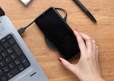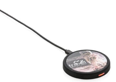 Rennes is a 5W Round Wireless Charger with a front Scratch-Proof Tempered Glass surface that can be branded edge to edge for optimal brand exposure. The back of the wireless charger has a smooth rubberized finish for comfortable user experience. Micro USB Input- 5V/1A, Wireless Output: 5W.