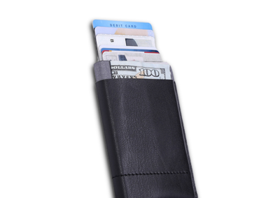 RFID safe card holder in PU material. Can hold up to 8cards with pocket outside to hold money and others. Product Size:11×6.8×1.2cm Packaging:Paper Box