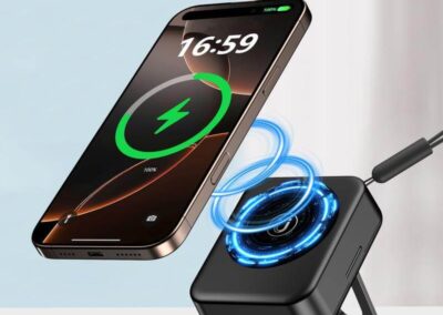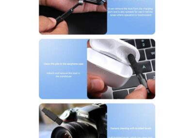 A 6-in-1 multifunctional gadget with 15W magnetic wireless charger that supports charging for Qi-compatible phones and earphones. This kit includes multiple cable adapters, a SIM ejector pin, a built-in pocket mirror, an adjustable phone stand, and a storage box with an electronics cleaning kit for keeping all your essentials clean and functioning to an optimum level. Packed in a gift box.
