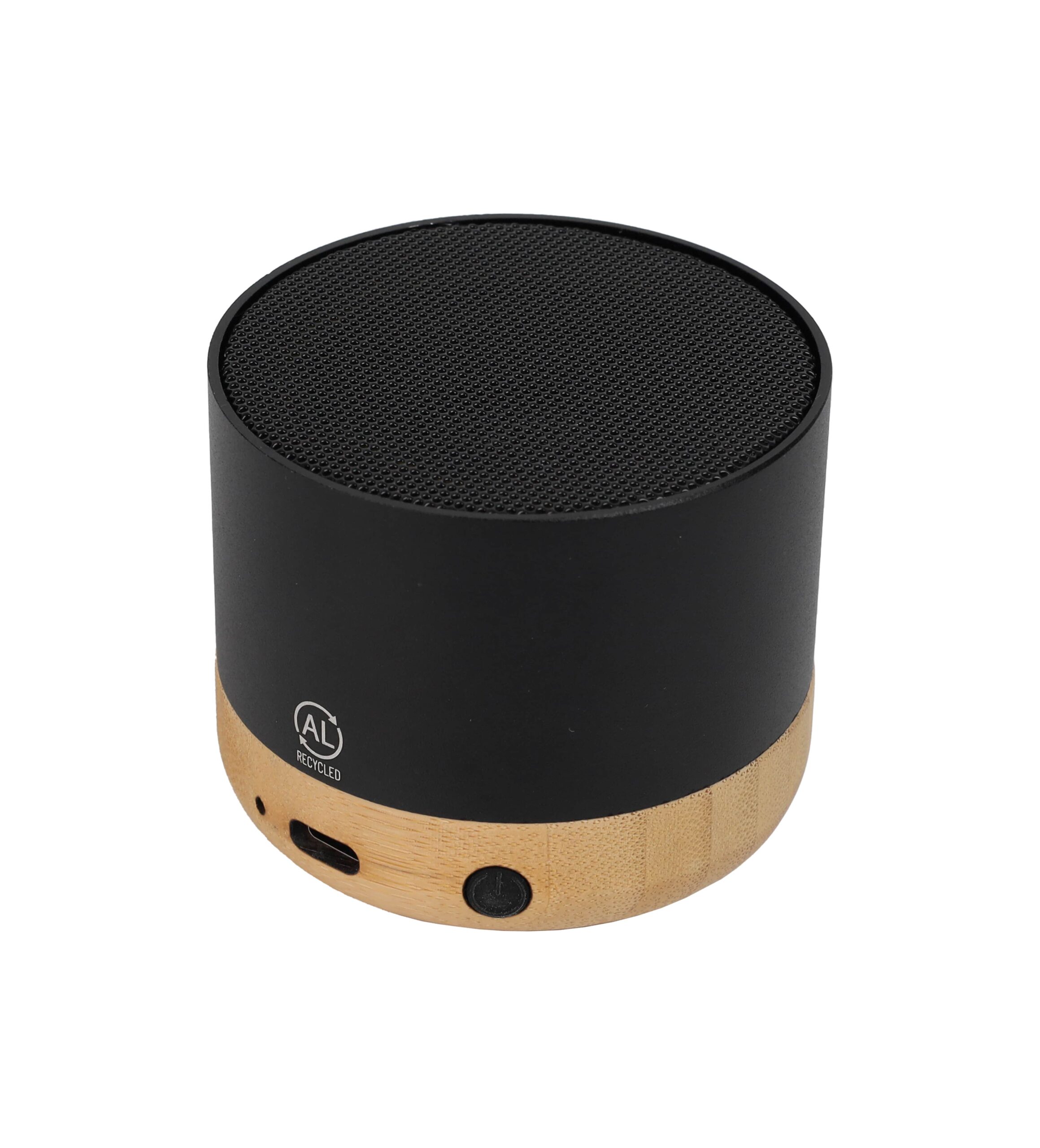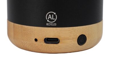 A bluetooth speaker made from aluminium alloy and eco-friendly bamboo with a 2-3 hours playtime & type C port.