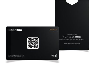 The fastest, most innovative to share your business information! Powered by Santhome, this NFC card is a modern alternative to traditional paper business cards. Instantly share all your essential business contact information, social links, photos, company information, meetings calendar and more with 1 tap or scan the QR code. It is very cost-effective, environment-friendly, and works completely app-free – no download required so start using Santhome Card immediately! The entire front side is fully customizable and has infinite uses! It is a great tool for lead generation and digital asset integration. Credit card size to fit any wallet. Compatible with iPhone and Android without app installation! GDPR compliant.
