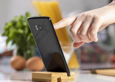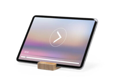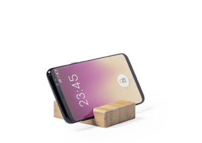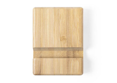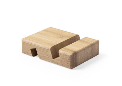 Bamboo holder for mobile devices (smartphones and tablets). Made with durable bamboo with lacquered finish and includes a slot/holder on both sides Product Size: 8 x 6 x 2cm