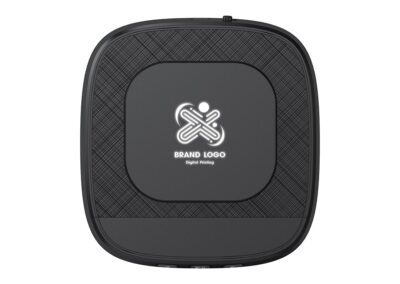 Loud 5W Speaker 2,000mAh powerbank with 15W Wireless Charger Light Up Logo speaker mobile stand with ABS + Linen Material.