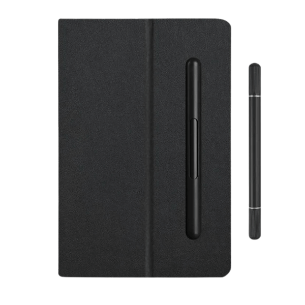 Stylish and functional, this A5 notebook features a unique 3D design cover. It comes with a smart 2-in-1 writing instrument—pen on one end, pencil on the other—secured by an elastic loop. The cover folds into a convenient mobile stand, and an additional elastic band ensures secure closure. Product Size: 20 × 14.1 × 1.5 cm Packaging: Kraft Paper Box