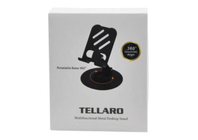 Tellaro 360 is a rotatable phone stand made from metal and can be rotated a full 360-degrees. It folds fully flat and is a sturdy and secure phone or tablet stand for your desk or table. Useful for working, taking calls or watching movies / videos. Packed in a gift box