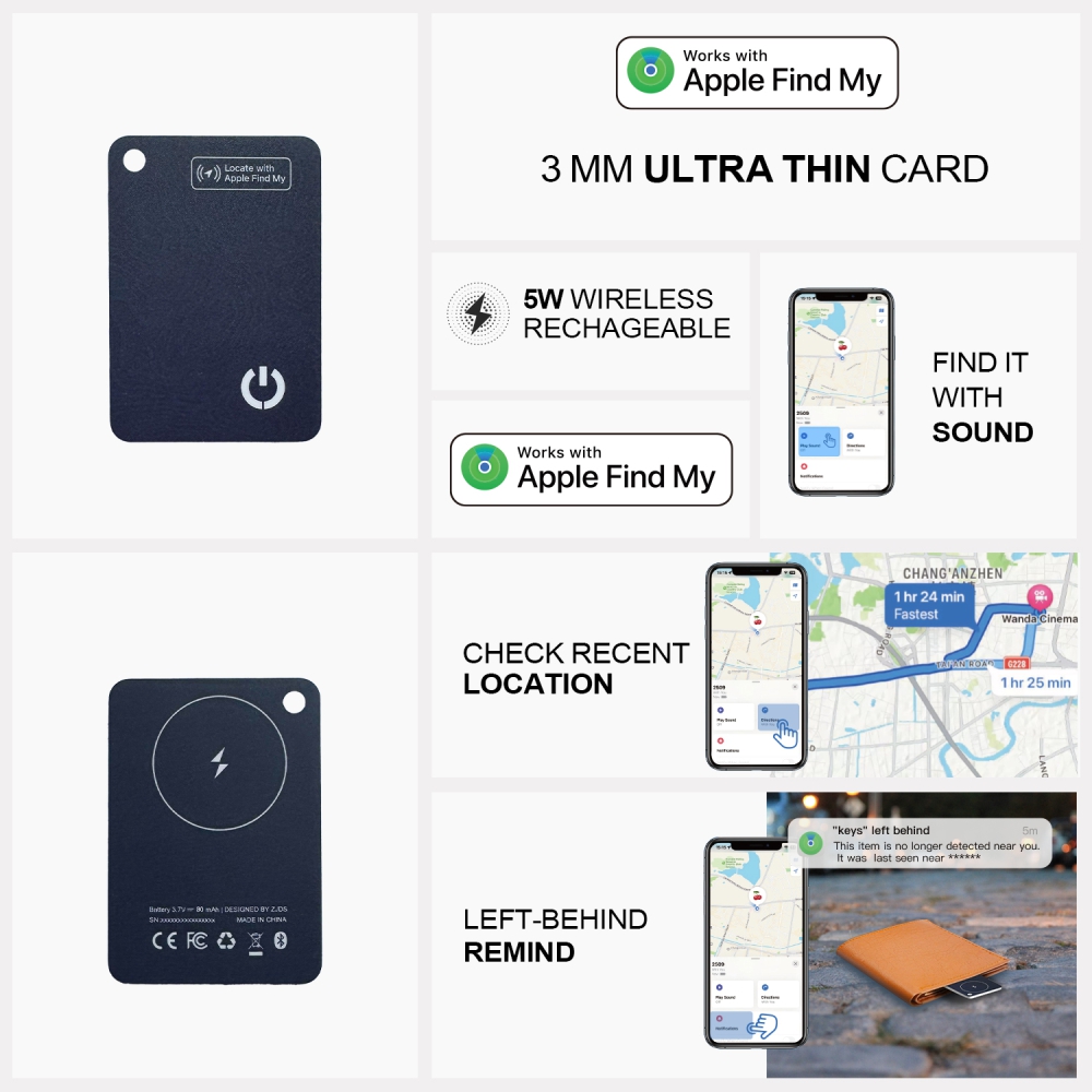 TrackCharge is a sleek, multifunctional anti-lost tracker that ensures you never misplace your valuables again. Equipped with Apple’s Find My integration, it helps you easily locate your items from afar or nearby. Featuring advanced anti-stalking and le-behind reminders, TrackCharge provides an additional layer of security. It seamlessly blends into your daily essentials, compact enough to fit in your wallet or attach to your keychain. What makes TrackCharge truly unique is its 5W wireless charging capability, ensuring that your tracker is always powered up without cables. Stay connected, stay charged, and never lose track with TrackCharge!