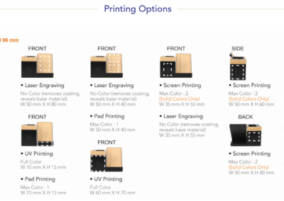 A multi-function pen stand with wireless charging and manual charging features. Made from bamboo & black ABS and has a white LED panel.