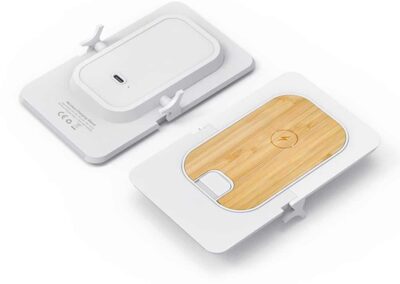 Eco-Fast Charger combines a fast 15W wireless charger with a stand, so you can quickly recharge your phone and use it to view media at the same time. It can be used in portrait or landscape mode. It is made of eco-friendly materials like wheat straw and cork and has a large area for prominently displaying your company logo or brand!