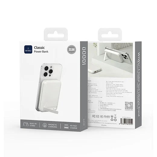 Meet the power bank that adapts to your life. The Classic Kickstand Magnetic Power Bank combines the convenience of snap-on wireless charging with the versatility of a multi-functional stand and high-speed wired outputs. Strong magnets ensure a perfect alignment for efficient 15W charging, while a cleverly hidden kickstand frees your hands, letting you watch videos or take calls while you power up. Need more speed? It also delivers up to 22.5W of super fast charging through its USB ports. With a robust 10000mAh capacity and national 3C safety certification, it’s the reliable, all-in-one charging solution for home, office, and travel.