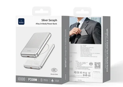 Experience the art of portable power. The WiWU Silver Seraph is not just a power bank; it’s a statement of sophistication. Its unibody shell is precision-milled from a single block of lightweight aluminum alloy, making it incredibly slim (only 9mm) and exceptionally durable. The surface is treated with our exclusive”Silver Seraph”process, creating a beautiful, tactile, fabric-like texture that feels amazing in your hand. It snaps securely to the back of your phone to deliver 15W of fast wireless charging, while the USB-C port provides a powerful 20W PD output for an even quicker boost. Inside, high-density Lishen polymer cells ensure safe, reliable, and efficient power. Available in both a pocket-friendly 5000mAh and a high-capacity 10000mAh version, the Silver Seraph is the ultimate accessory for the modern professional.