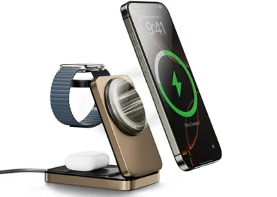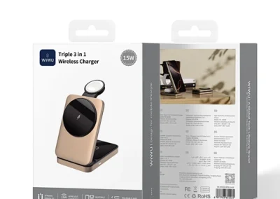 Charge smarter and faster with the WiWU Wi-W038 Magnetic Wireless Charging Station. Designed for iPhone, Apple Watch, and earbuds, this sleek 3-in-1 charger offers 15W fast wireless charging with built-in protection against over-voltage, overheating, and overcurrent. The foldable and lightweight design makes it a perfect travel companion, doubling as a stand for hands-free viewing. With its premium metal panel and compact body, it brings elegance and efficiency to any desktop or nightstand.