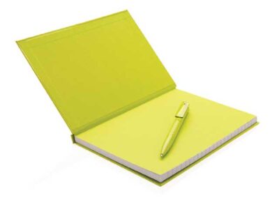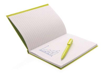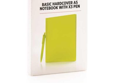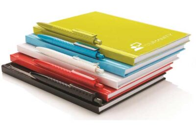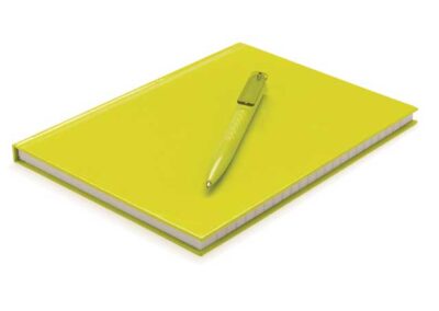 Ruled A5 hardcover standard notebook set including plastic pen. 160 pages of 70g/m2 inside. White coloured pages. Packed in Gift box.
